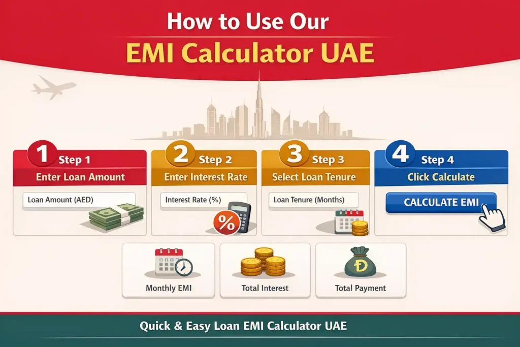 If you’re applying for a salary-based loan, our personal loan EMI calculator UAE helps you estimate your monthly burden before committing.